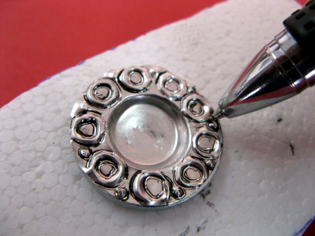 FOTO-4 Se vuelve otra vez el plato boca arriba y se va repujando.