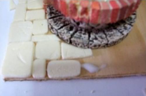 El primer paso consiste en recortar los adoquines y pegarlos