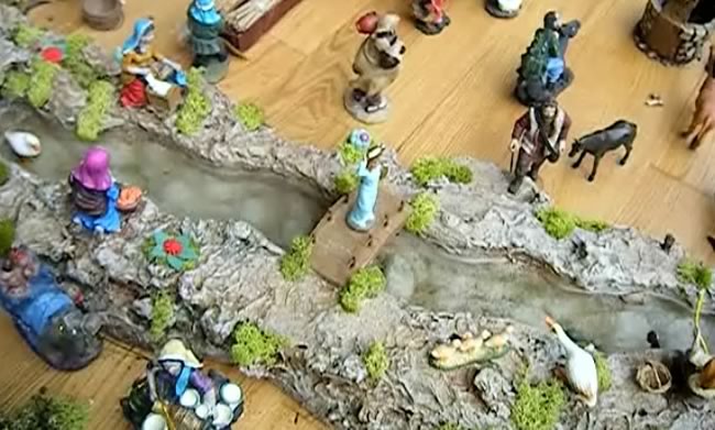 - Figuras de barro (pescador, dos lavanderas, uno durmiendo)