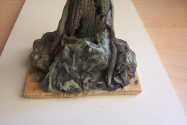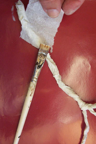 una vez seco, una veladura de blanco marfil y un poco de verde.