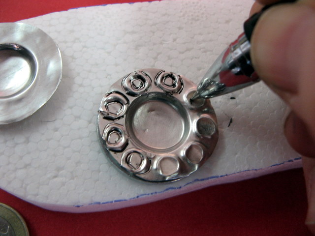 FOTO-4 Se vuelve otra vez el plato boca arriba y se va repujando.