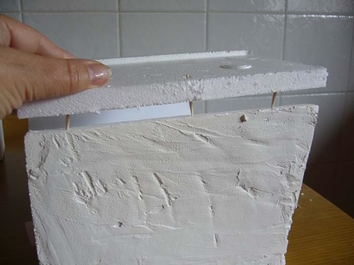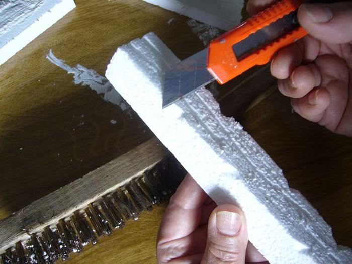 Cortaremos una tira fina de corcho que colocaremos en la chimenea