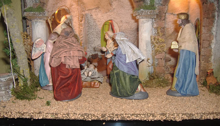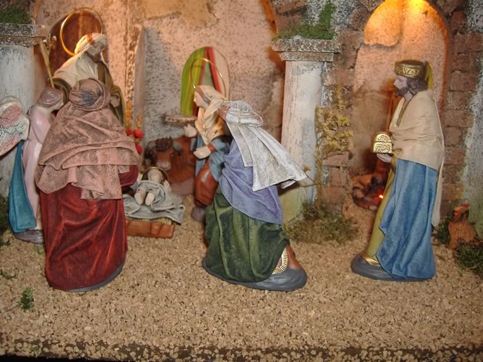 - 19752/14 Reyes adorando, 14 cm. barro lienzado.