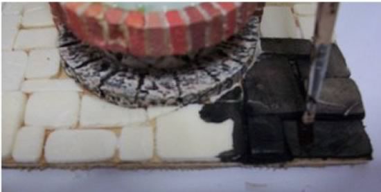 El primer paso consiste en recortar los adoquines y pegarlos