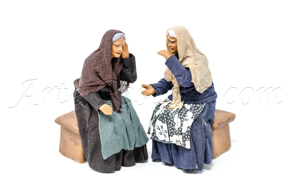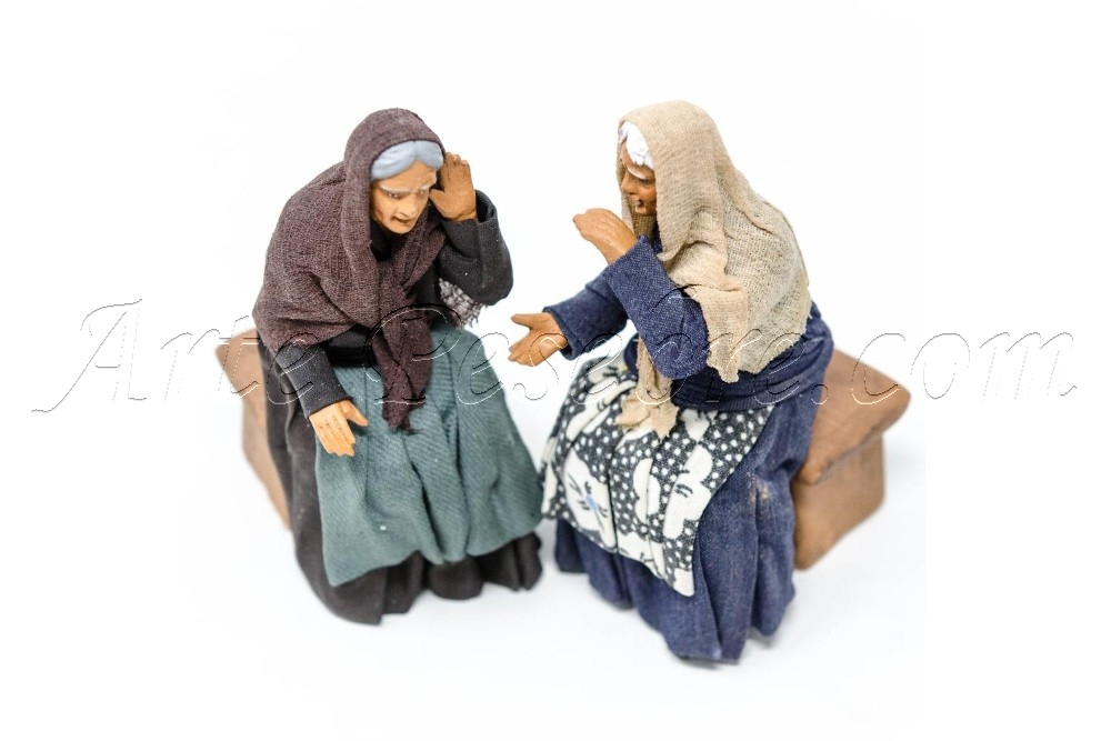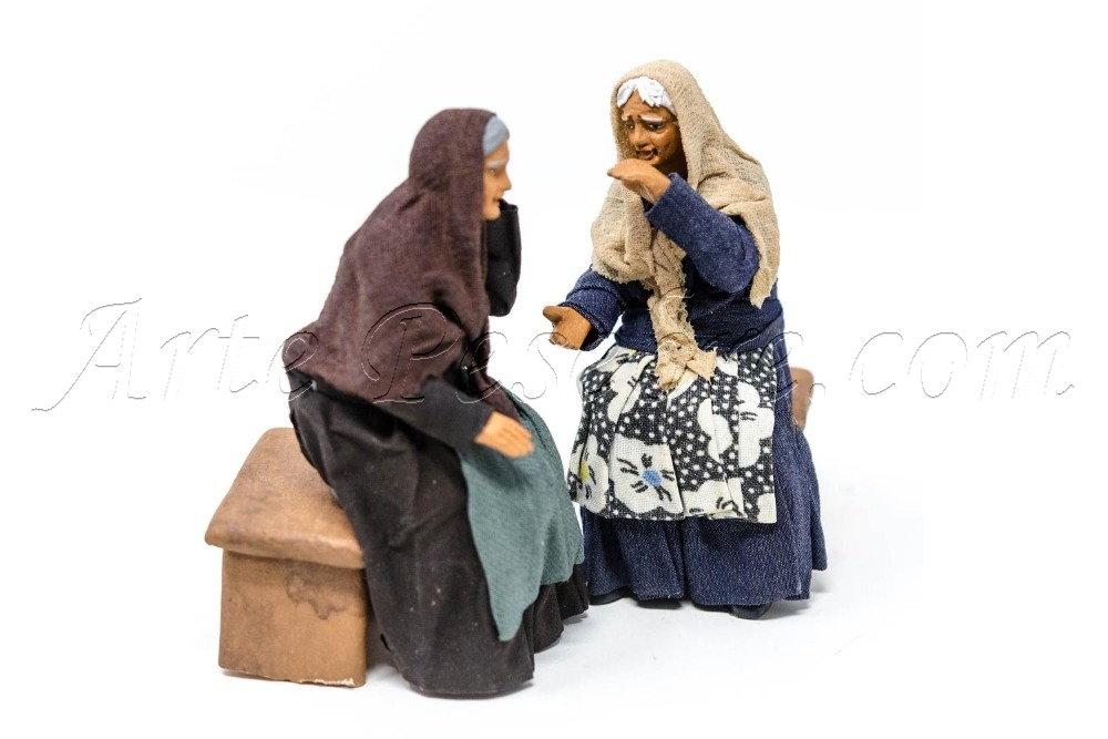 Descripción: Cotillas. Figura de barro vestida con tejidos de alta calidad. Rostros extremadamente refinados y gran atención al detalle