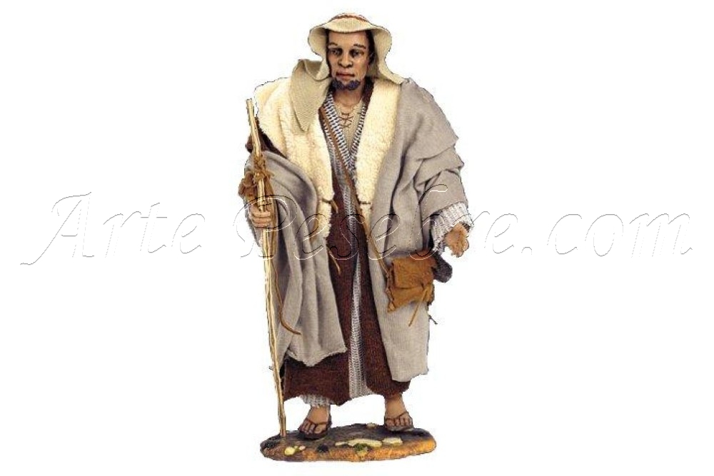 Descripción: Pastor. Figura de resina vestida a mano con telas de alta calidad y gran atención al detalle