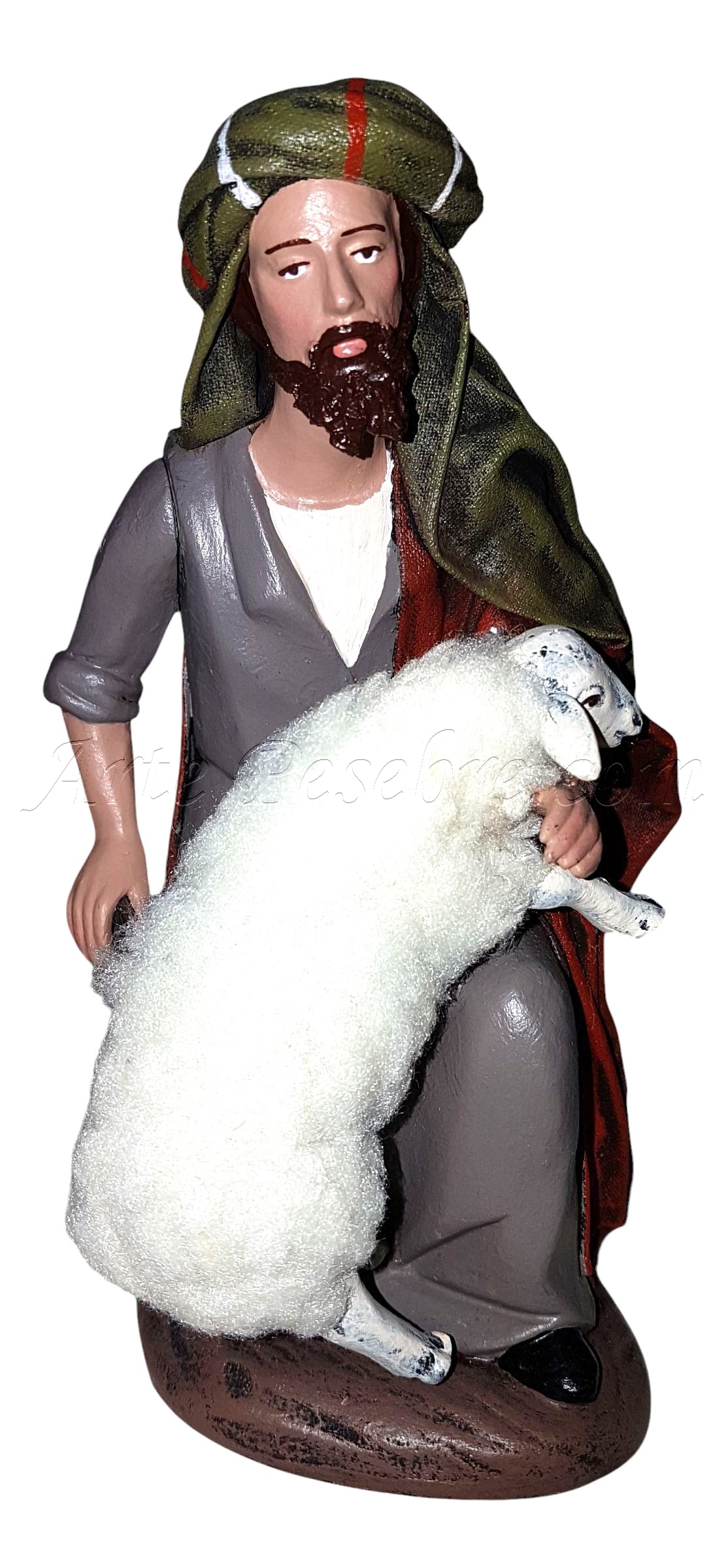 Descripción: Pastor esquilando oveja con motor en barro lienzado.