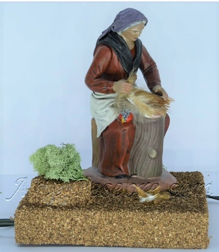 Pastora pelando pollos con motor, lienzado