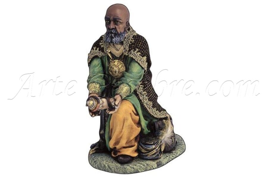 Referencia: Rey mulato con movimiento, para figuras de 30 cm. Inclina la cabeza y levanta su regalo