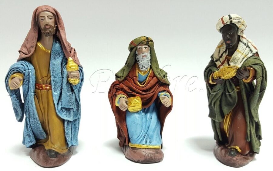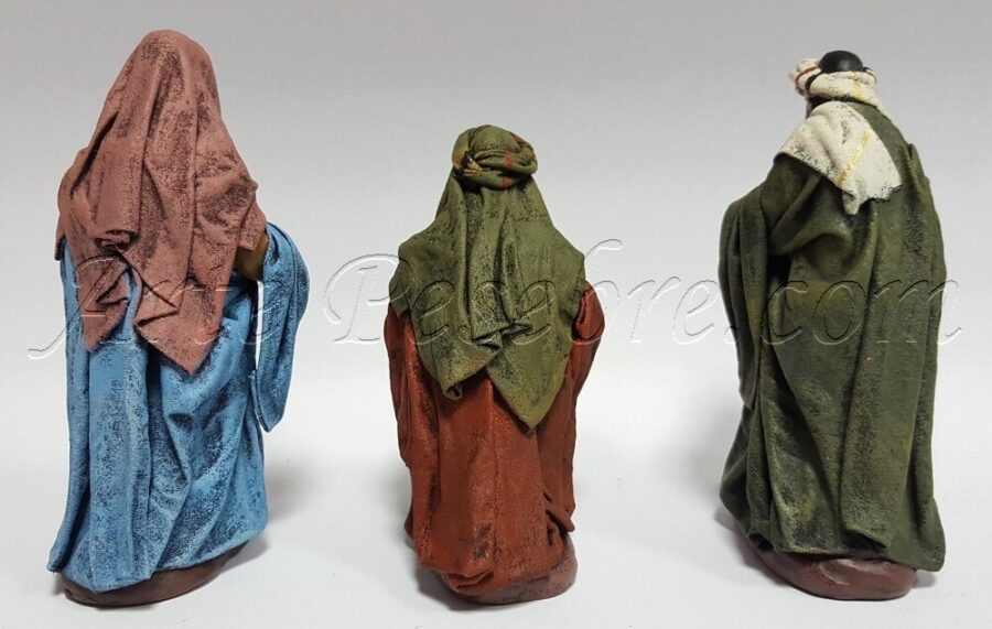 Descripción: Reyes adorando para figuras de 12-14 cm, en barro lienzado